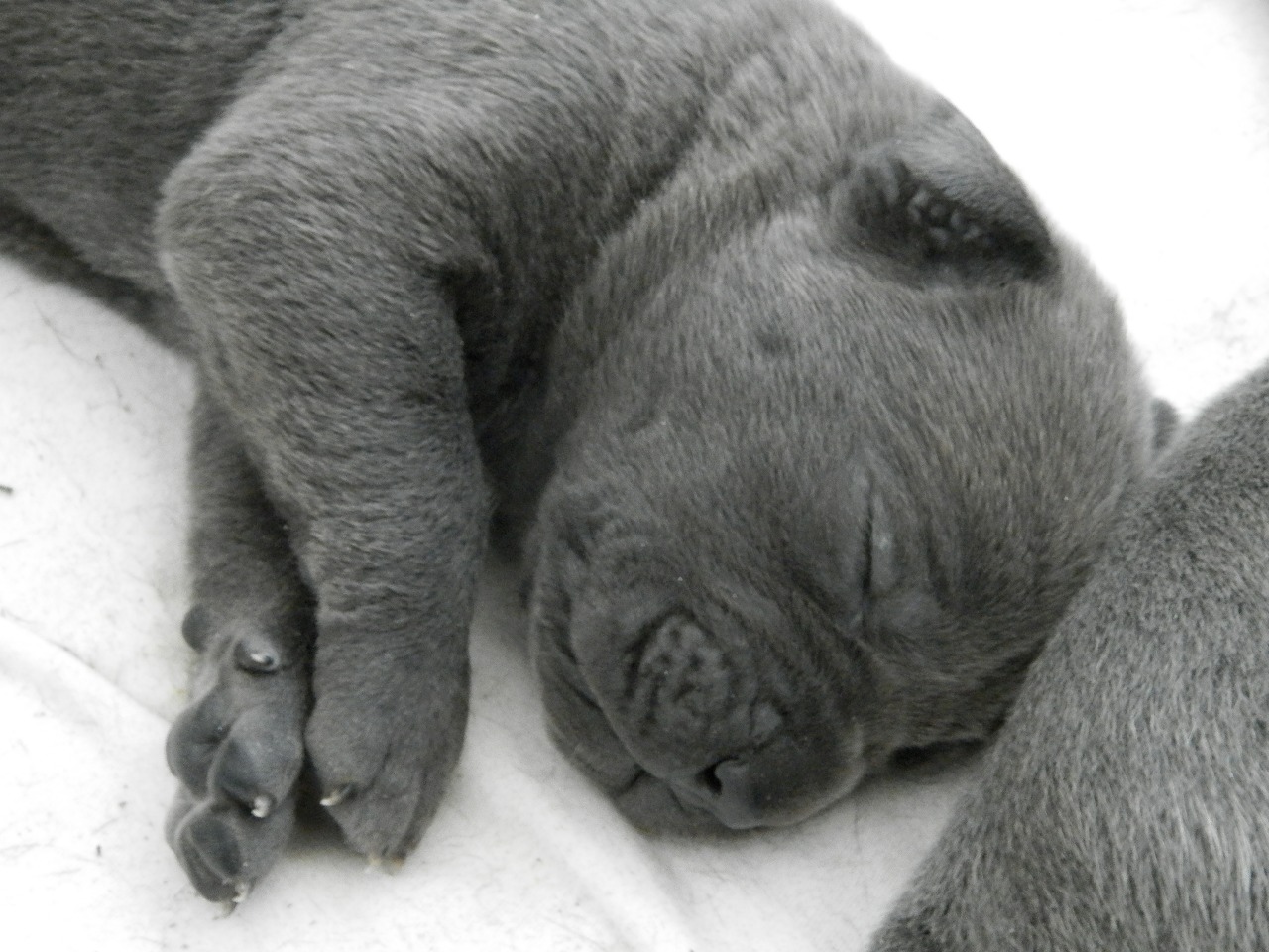 První štěňátka se narodila v naší chovatelské stanici dne 29.5.2013. Celkem osm štěňátek z toho čtyři pejsci a čtyři fenky. Štěňátka jsou v barvě modrá a modrá žíhaná. Štěňata jsou odčervená, očkovaná, čipovaná, mají kupírované ocásky a vystaveny europasy. Štěňátka jsou po kvalitních rodičích. Otec je mohutný, impozantní krasavec - D. J. Corso of Bajer, šampion ČR a klubový vítěz. (více o otci štěňátek na https://www.ofbajer.com/) Matka je krásná velká fena - Angie Blue Baby Geraldino. (více o matce štěňátek na našich stránkách v sekci fotogalerie a naši psi - Angie). Fotografie a další informace o obou naleznete též na https://www.canecorsoklub.cz Štěňátka jsou velmi vydařená a mají se čile k světu. Štěňátka jsou mohutné konstituce a jsou v perfektní kondici, jsou emočně vyrovnaná a stabilní, temperamenty mají v rovnováze s mírnou převahou extravertního- sangvinického ladění. Optimální pro další práci - socializace, výchova a výcvik. Štěňátka jsou po celý den v kontaktu s okolím a dobře se socializují. Smlouva a chovatelský servis je samozřejmostí.